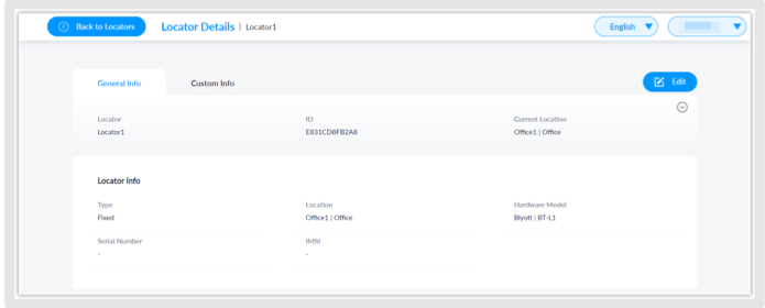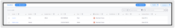 Clicking on the “Locators” tab on the left side panel, depending on your “Access Level”, you can see the locators list with information like Locator, Location, Location Code, ID, Type, Last Seen, Serial Number, IMSI, Hardware Model.