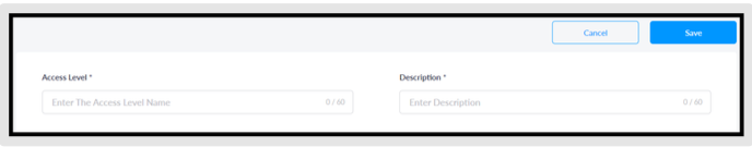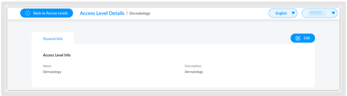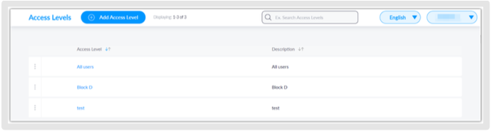 Once the Access Levels have been set up and are active, they can be searched for within the platform by selecting the search field (Ex. Search Access Levels) from the upper right top of the screen.