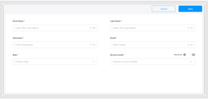 “Access Levels” - If “All Users” are turned on then the User has access to all assets. If specific Access Levels are created, you can choose those from the dropdown list.