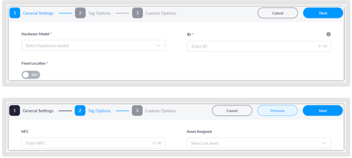 Here you can enter all the assets that you want to keep within the platform. Equipment you want to track, find its real-time location, is going to be assigned to the tag. This means that a tag’s ID/MAC Address is going to be attached to a specific asset. At this moment you will have to physically place a tag on that particular asset (equipment or device).