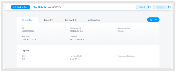 - “General Info” - Here you can find ID, Asset Assigned, Current Location, First Seen, Last Seen.