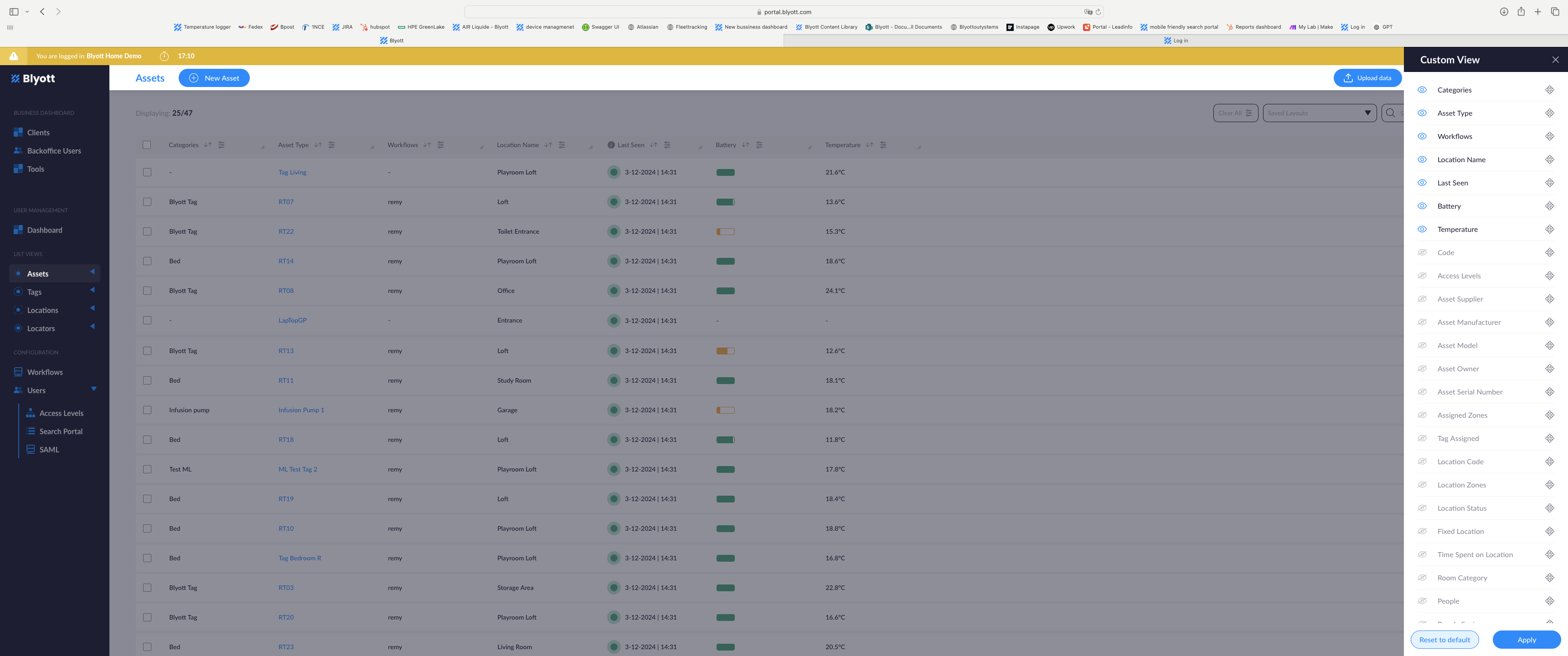 Follow these simple steps to customize your layout for assets, tags, locations, locators, and workflows