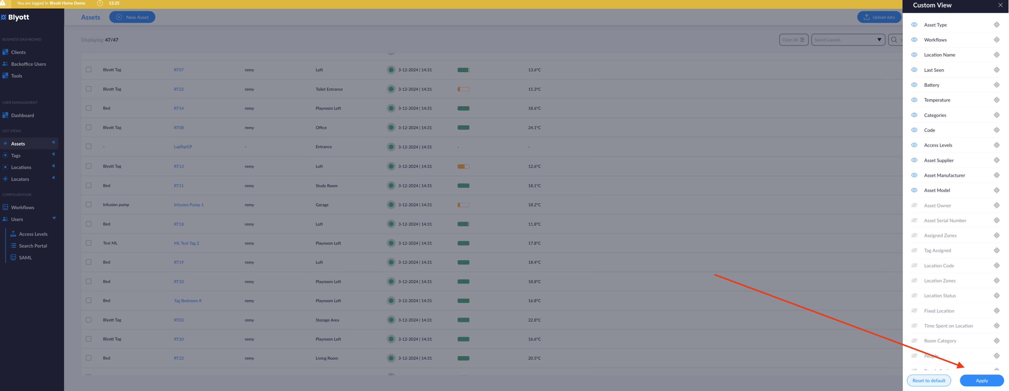 - After customizing the layout, click Apply in the bottom-right corner of the screen