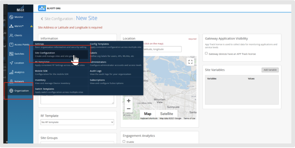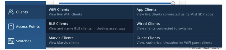 You will now land on the MIST managing dashboard where you can see the following options on the left sidebar.