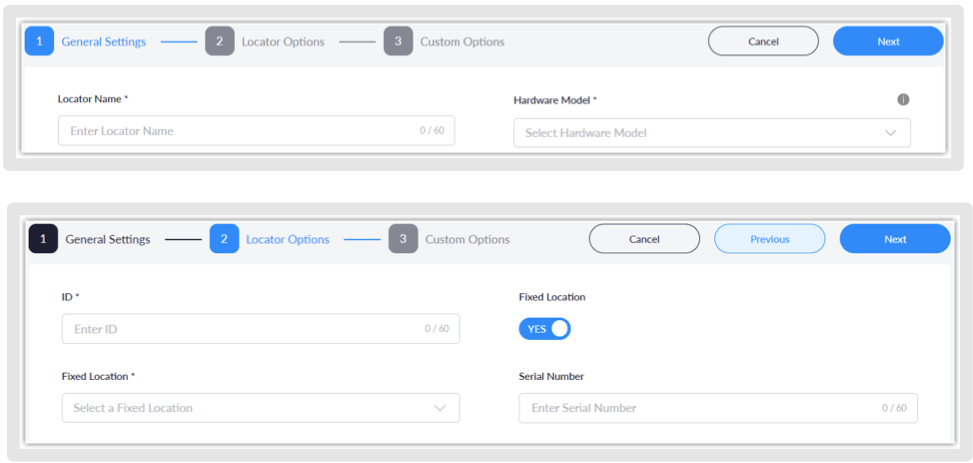 To add new locators, click the "+" (Add Locator) button and enter the following information: