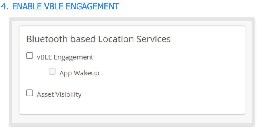 Next step is enabling vBLE in the „Bluetooth based Location Services“ section.