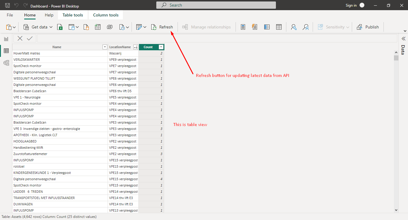- The table visual displays all the fields from Locators table, except for custom fields. Because custom fields can vary depending on the user. However, users can easily add their own custom fields by following the instructions outlined in the Customizing Tables section.